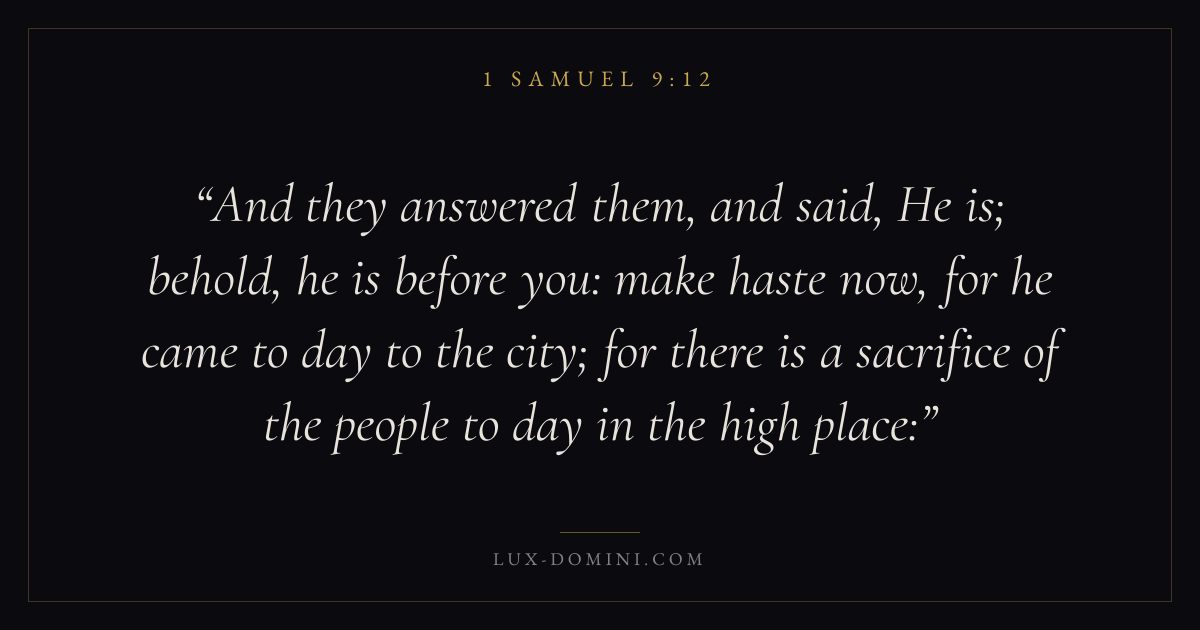 And they answered them, and said, He is; behold, he is before you: make haste now, for he came to day to the city; for there is a sacrifice of the people to day in the high place: