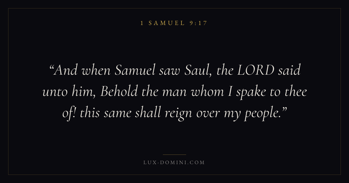 And when Samuel saw Saul, the LORD said unto him, Behold the man whom I spake to thee of! this same shall reign over my people.