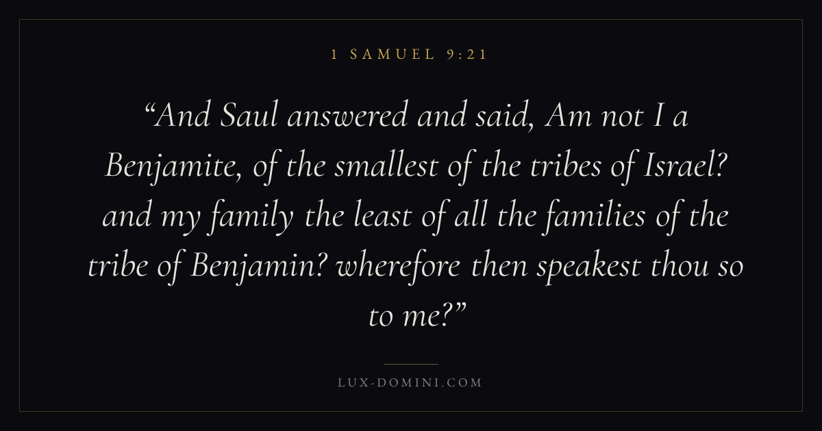 And Saul answered and said, Am not I a Benjamite, of the smallest of the tribes of Israel? and my family the least of all the families of the tribe of Benjamin? wherefore then speakest thou so to me?