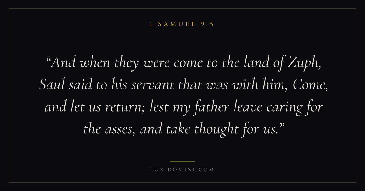 And when they were come to the land of Zuph, Saul said to his servant that was with him, Come, and let us return; lest my father leave caring for the asses, and take thought for us.