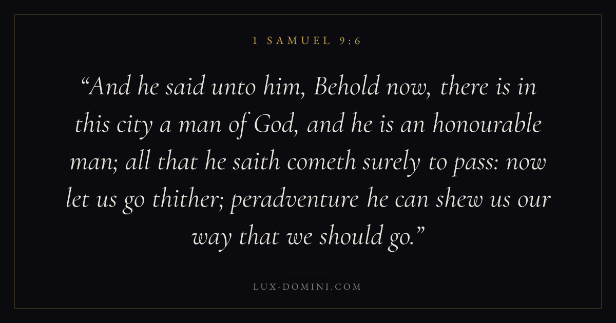 And he said unto him, Behold now, there is in this city a man of God, and he is an honourable man; all that he saith cometh surely to pass: now let us go thither; peradventure he can shew us our way that we should go.