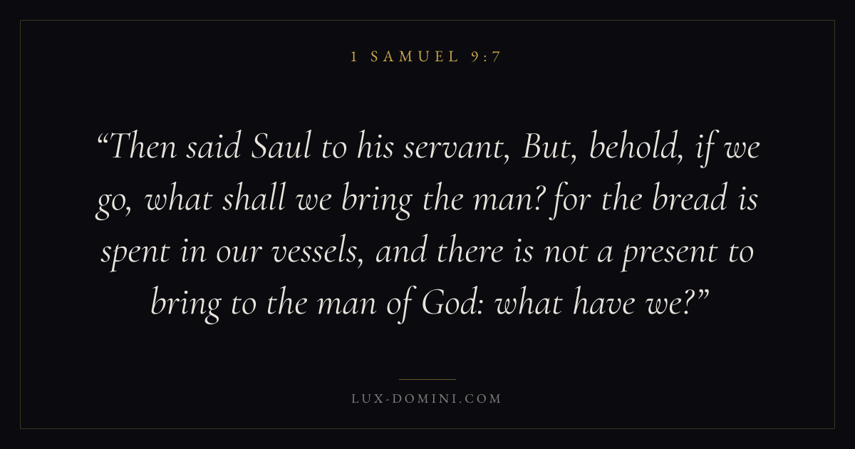 Then said Saul to his servant, But, behold, if we go, what shall we bring the man? for the bread is spent in our vessels, and there is not a present to bring to the man of God: what have we?
