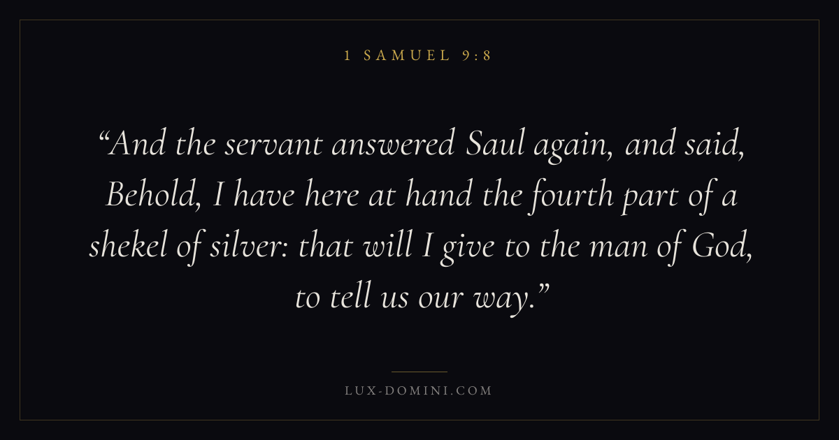 And the servant answered Saul again, and said, Behold, I have here at hand the fourth part of a shekel of silver: that will I give to the man of God, to tell us our way.