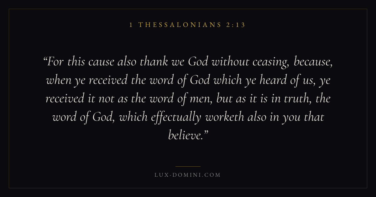For this cause also thank we God without ceasing, because, when ye received the word of God which ye heard of us, ye received it not as the word of men, but as it is in truth, the word of God, which effectually worketh also in you that believe.