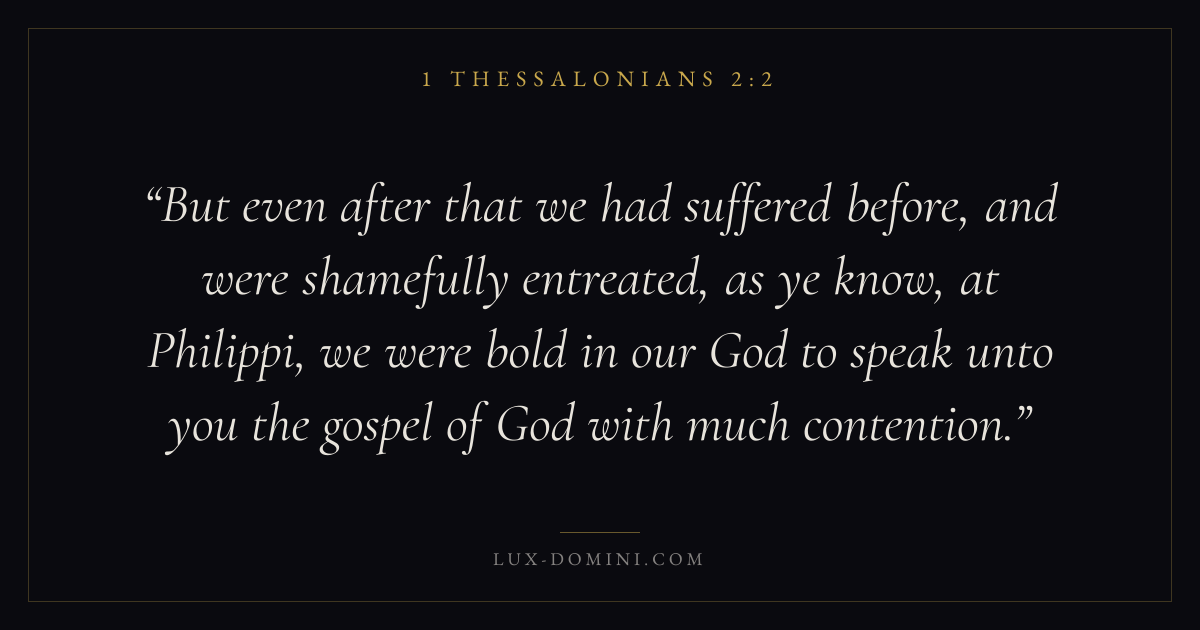 But even after that we had suffered before, and were shamefully entreated, as ye know, at Philippi, we were bold in our God to speak unto you the gospel of God with much contention.