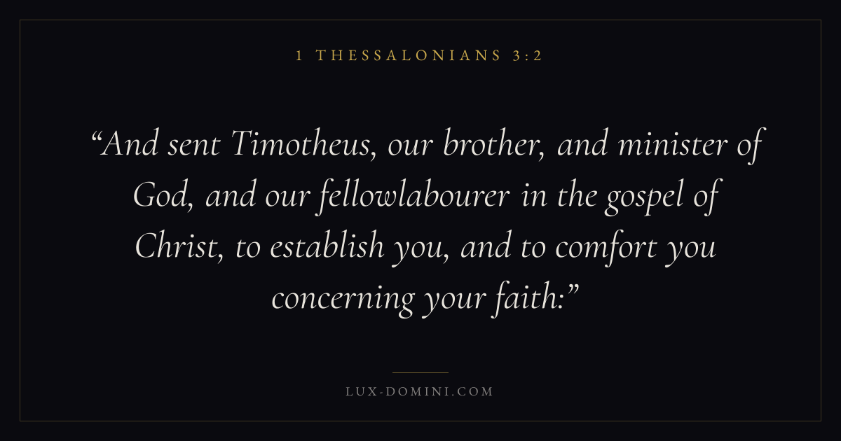 And sent Timotheus, our brother, and minister of God, and our fellowlabourer in the gospel of Christ, to establish you, and to comfort you concerning your faith: