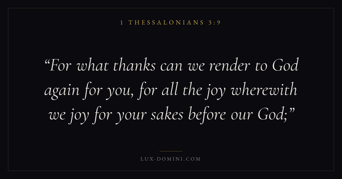 For what thanks can we render to God again for you, for all the joy wherewith we joy for your sakes before our God;