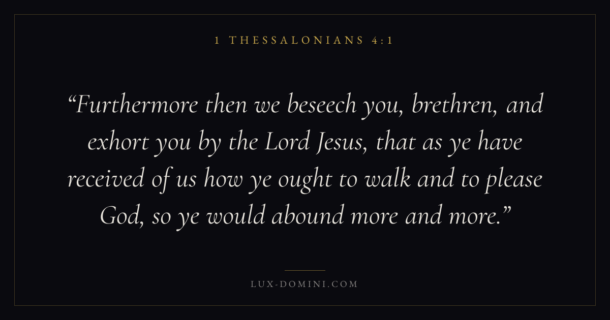 Furthermore then we beseech you, brethren, and exhort you by the Lord Jesus, that as ye have received of us how ye ought to walk and to please God, so ye would abound more and more.