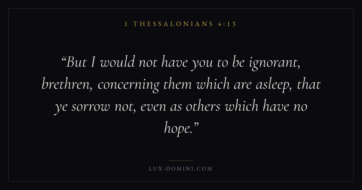 But I would not have you to be ignorant, brethren, concerning them which are asleep, that ye sorrow not, even as others which have no hope.