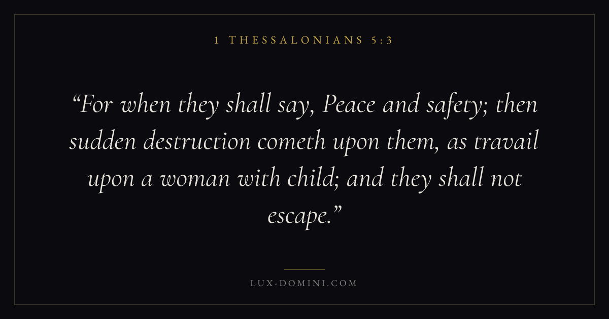 For when they shall say, Peace and safety; then sudden destruction cometh upon them, as travail upon a woman with child; and they shall not escape.