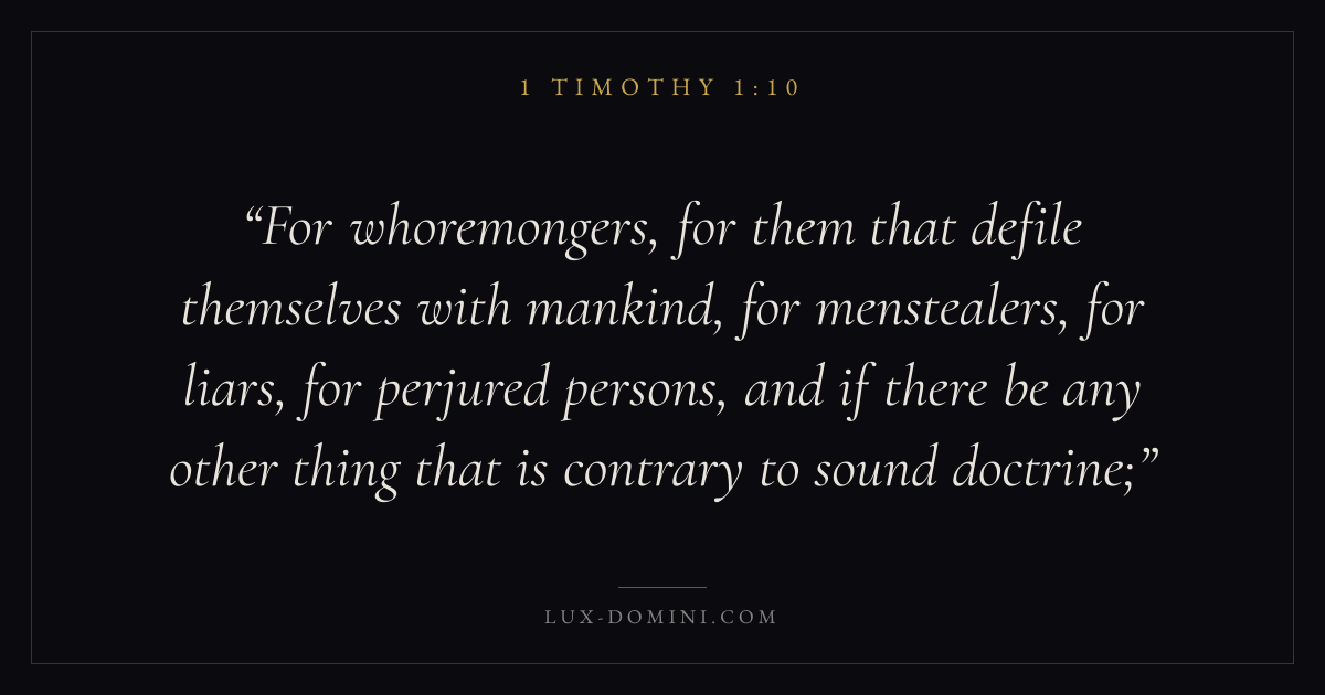 For whoremongers, for them that defile themselves with mankind, for menstealers, for liars, for perjured persons, and if there be any other thing that is contrary to sound doctrine;