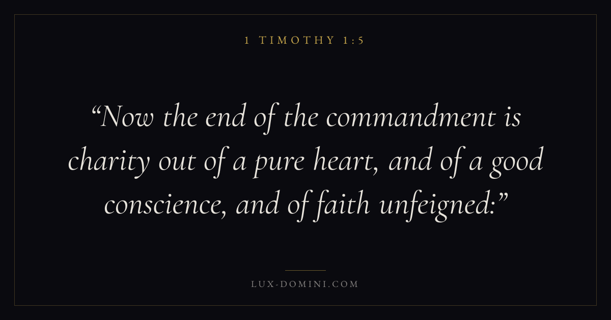 Now the end of the commandment is charity out of a pure heart, and of a good conscience, and of faith unfeigned: