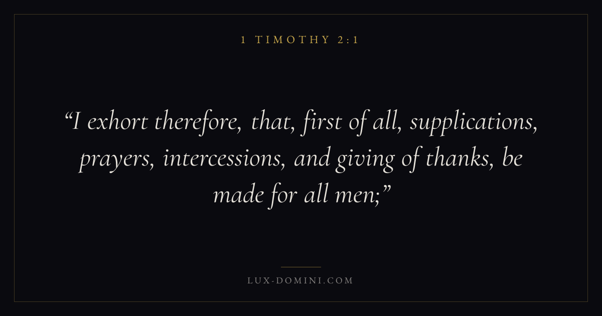 I exhort therefore, that, first of all, supplications, prayers, intercessions, and giving of thanks, be made for all men;