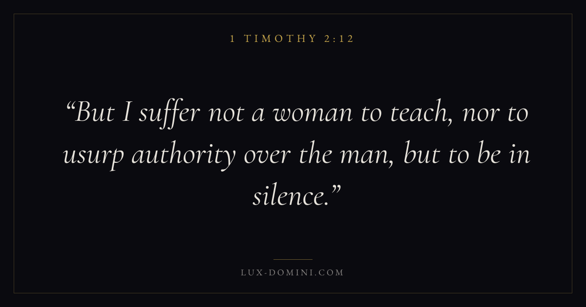 But I suffer not a woman to teach, nor to usurp authority over the man, but to be in silence.