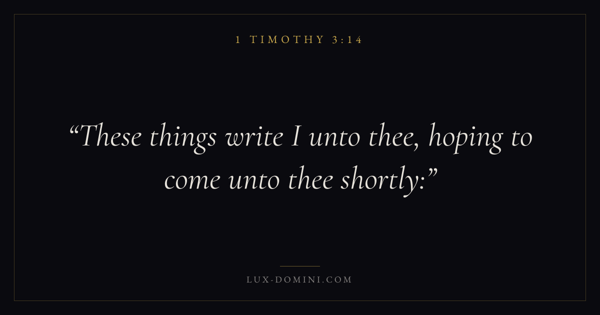 What does 1 Timothy 3:14 mean?