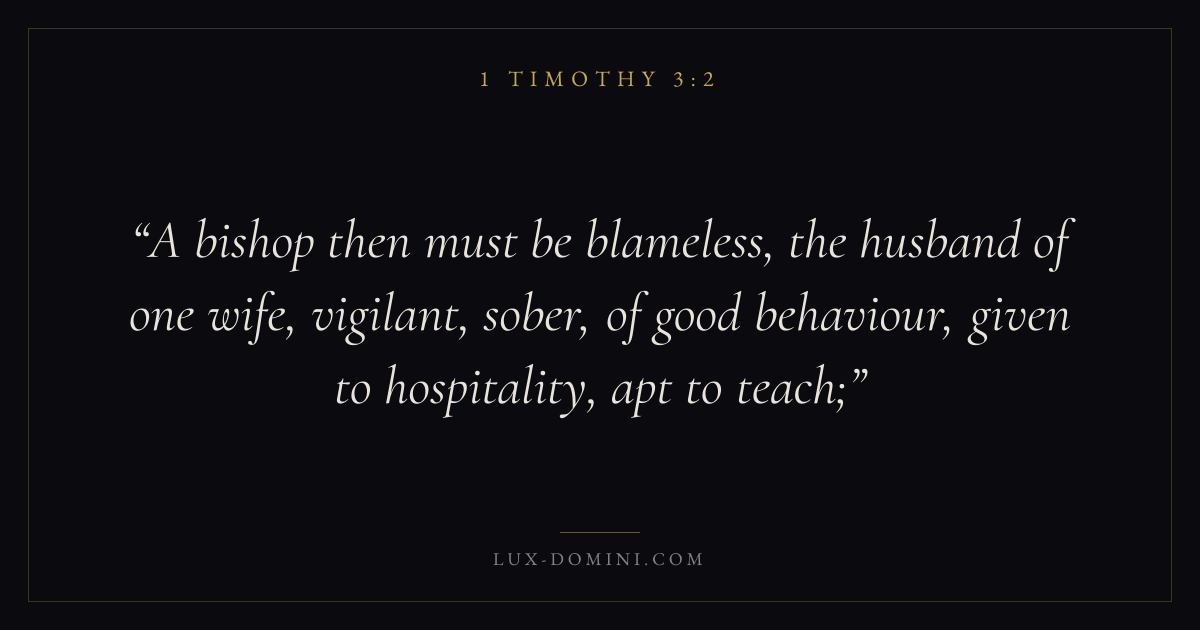 A bishop then must be blameless, the husband of one wife, vigilant, sober, of good behaviour, given to hospitality, apt to teach;