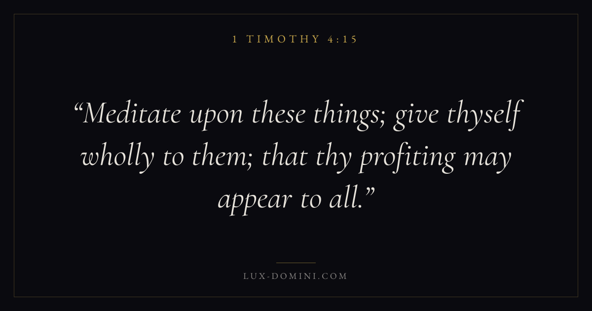 Meditate upon these things; give thyself wholly to them; that thy profiting may appear to all.