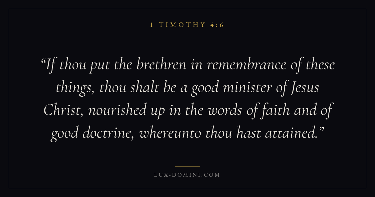 If thou put the brethren in remembrance of these things, thou shalt be a good minister of Jesus Christ, nourished up in the words of faith and of good doctrine, whereunto thou hast attained.