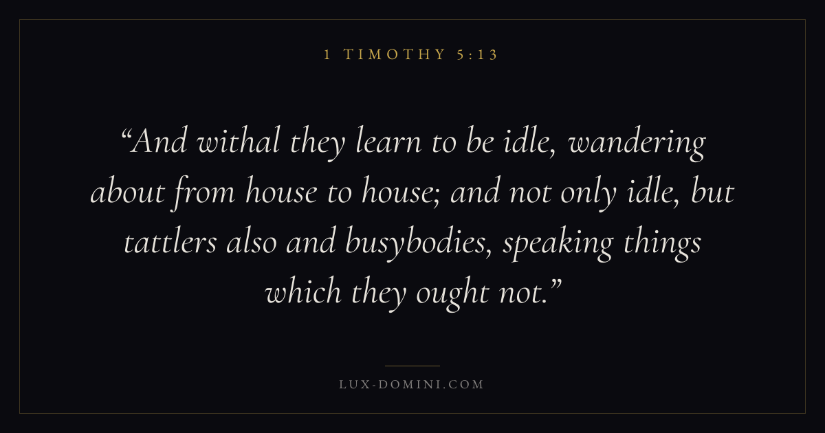 And withal they learn to be idle, wandering about from house to house; and not only idle, but tattlers also and busybodies, speaking things which they ought not.
