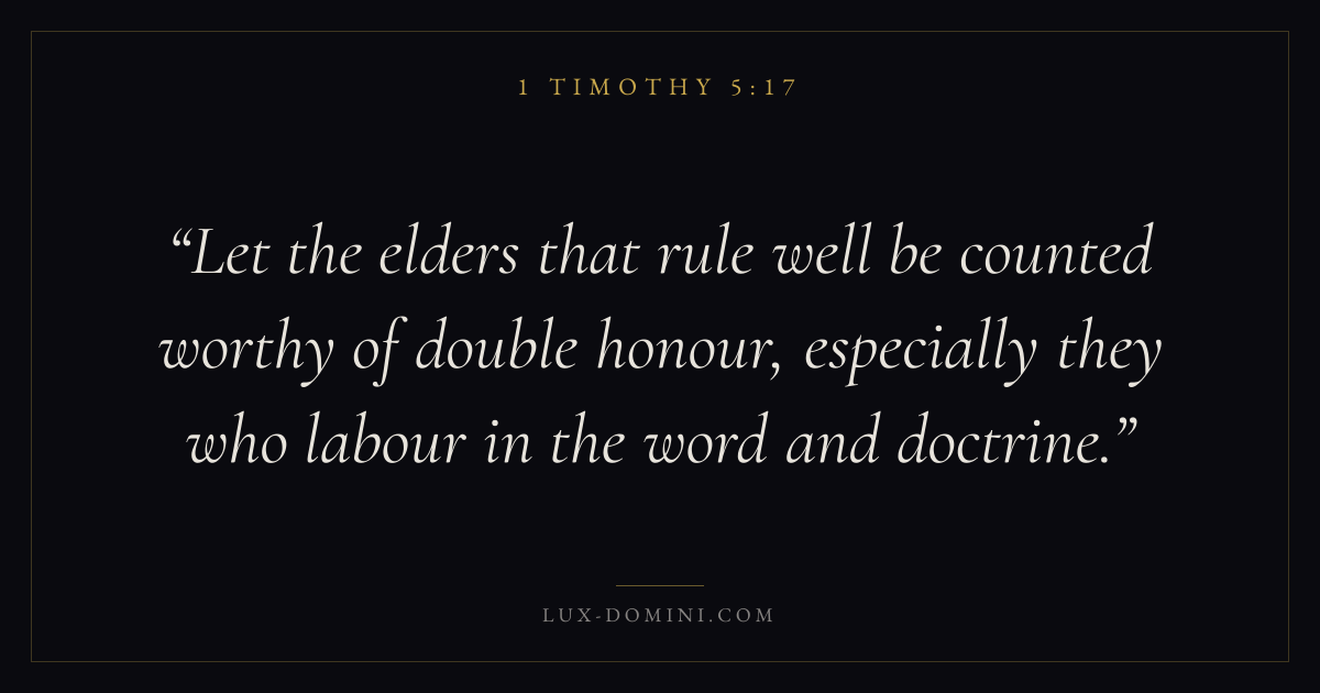 Let the elders that rule well be counted worthy of double honour, especially they who labour in the word and doctrine.