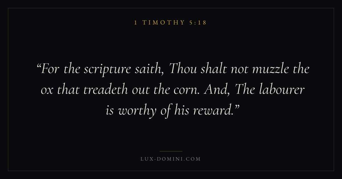 For the scripture saith, Thou shalt not muzzle the ox that treadeth out the corn. And, The labourer is worthy of his reward.