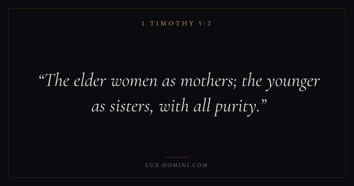 Keep this verse inside 1 Timothy 5:1-2 and alongside a few nearby related passages.