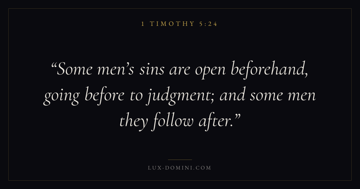 Some men’s sins are open beforehand, going before to judgment; and some men they follow after.