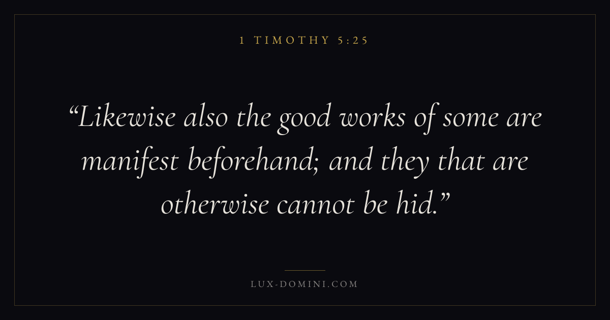 Likewise also the good works of some are manifest beforehand; and they that are otherwise cannot be hid.