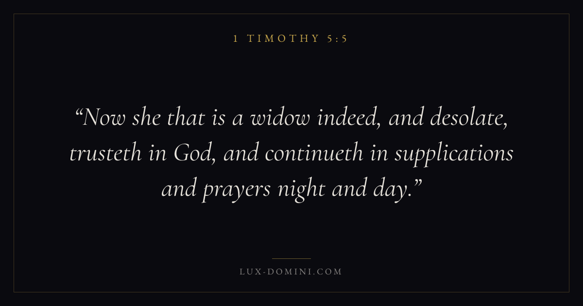 Now she that is a widow indeed, and desolate, trusteth in God, and continueth in supplications and prayers night and day.