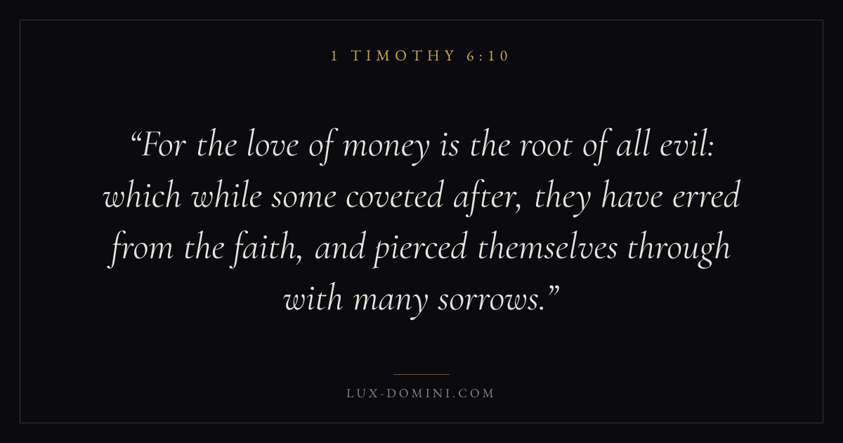 For the love of money is the root of all evil: which while some coveted after, they have erred from the faith, and pierced themselves through with many sorrows.