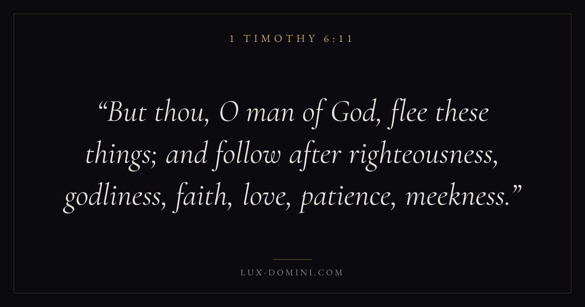 But thou, O man of God, flee these things; and follow after righteousness, godliness, faith, love, patience, meekness.