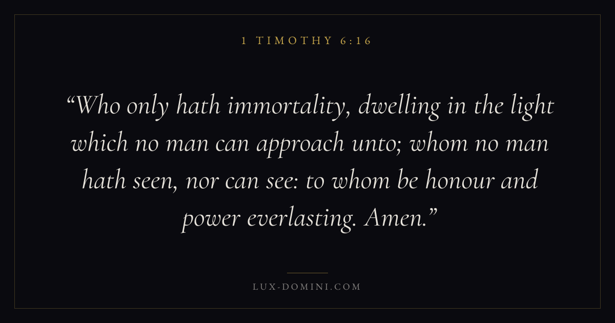 Who only hath immortality, dwelling in the light which no man can approach unto; whom no man hath seen, nor can see: to whom be honour and power everlasting. Amen.
