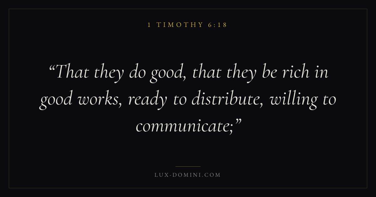 That they do good, that they be rich in good works, ready to distribute, willing to communicate;