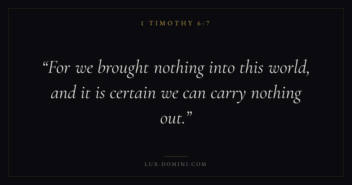 For we brought nothing into this world, and it is certain we can carry nothing out.