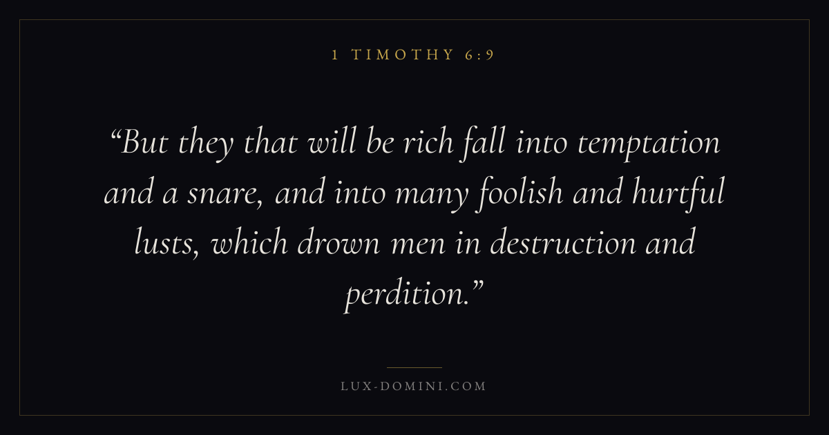 But they that will be rich fall into temptation and a snare, and into many foolish and hurtful lusts, which drown men in destruction and perdition.