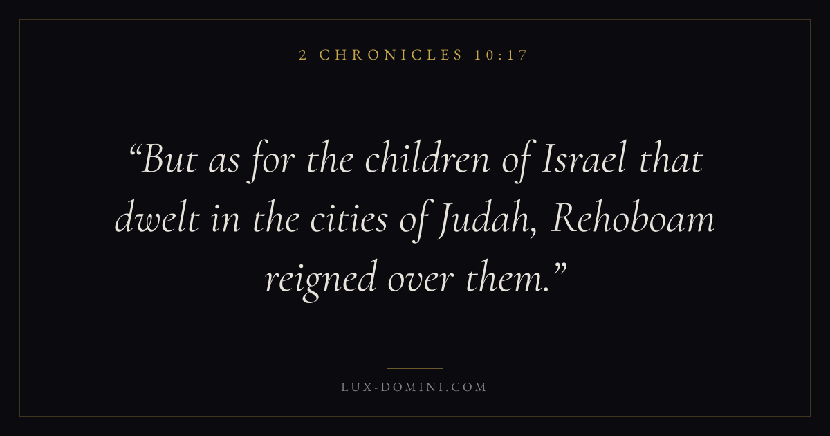 But as for the children of Israel that dwelt in the cities of Judah, Rehoboam reigned over them.
