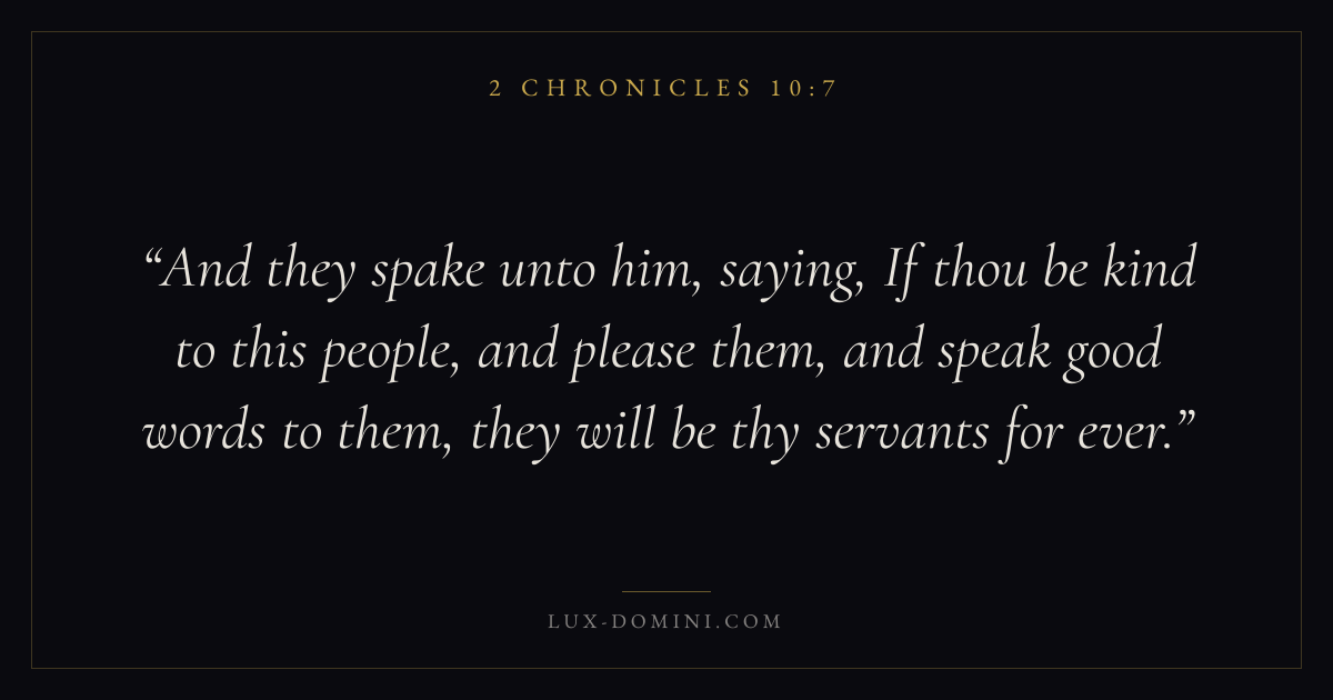 And they spake unto him, saying, If thou be kind to this people, and please them, and speak good words to them, they will be thy servants for ever.