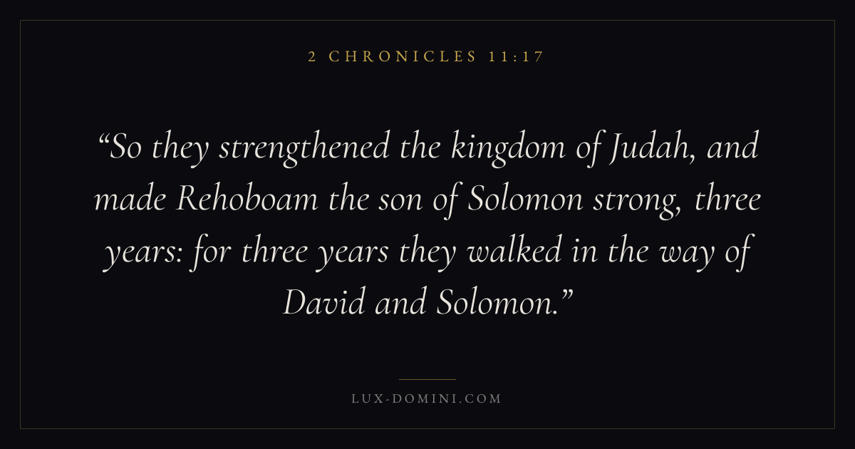So they strengthened the kingdom of Judah, and made Rehoboam the son of Solomon strong, three years: for three years they walked in the way of David and Solomon.