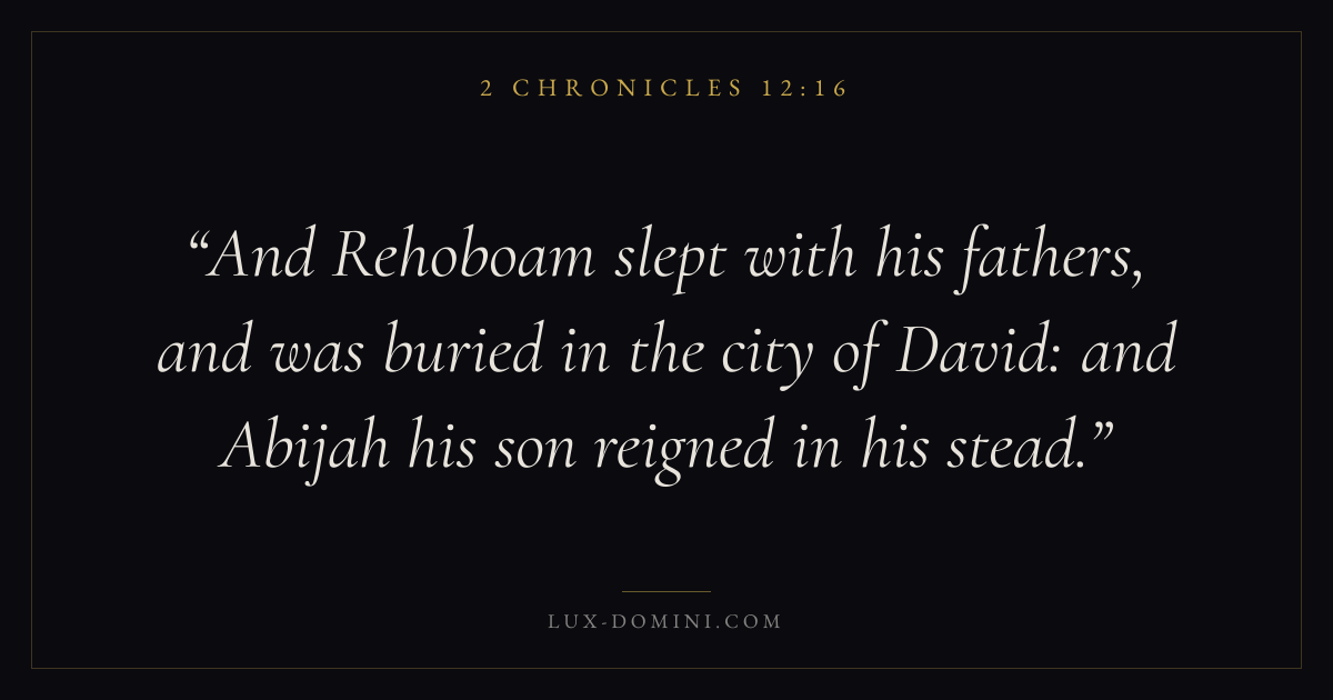 And Rehoboam slept with his fathers, and was buried in the city of David: and Abijah his son reigned in his stead.