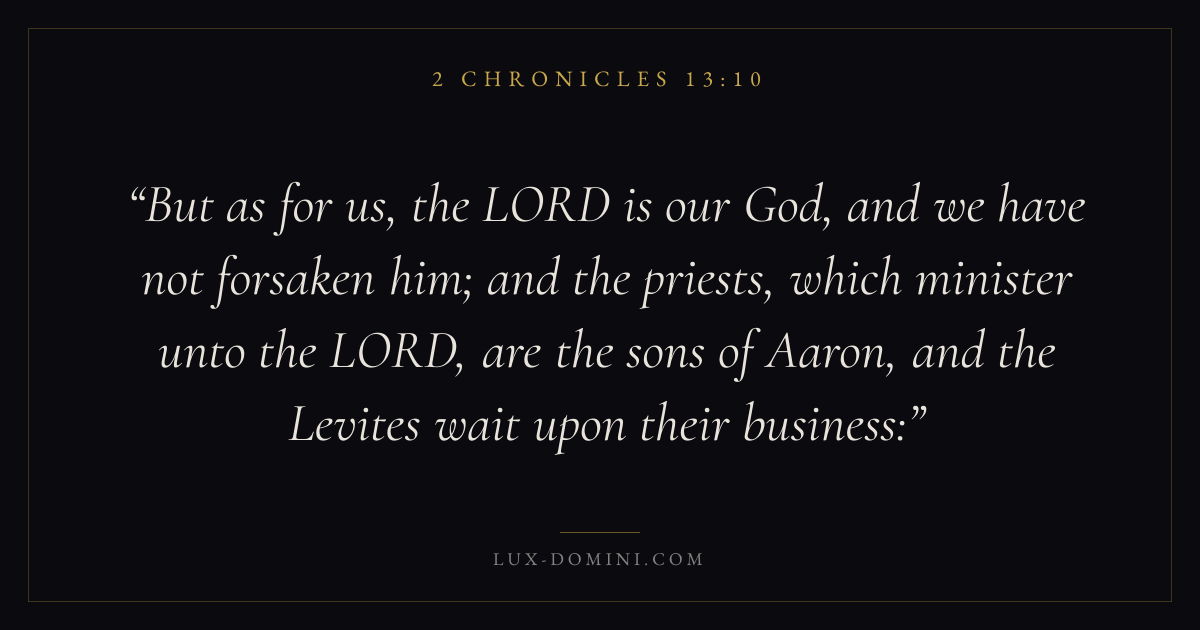But as for us, the LORD is our God, and we have not forsaken him; and the priests, which minister unto the LORD, are the sons of Aaron, and the Levites wait upon their business: