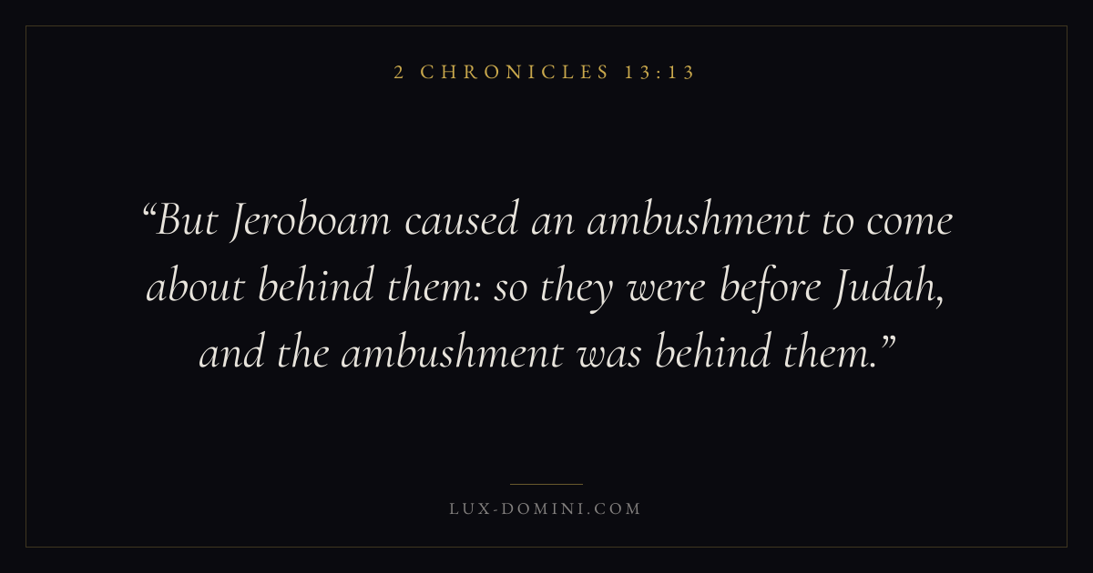 But Jeroboam caused an ambushment to come about behind them: so they were before Judah, and the ambushment was behind them.