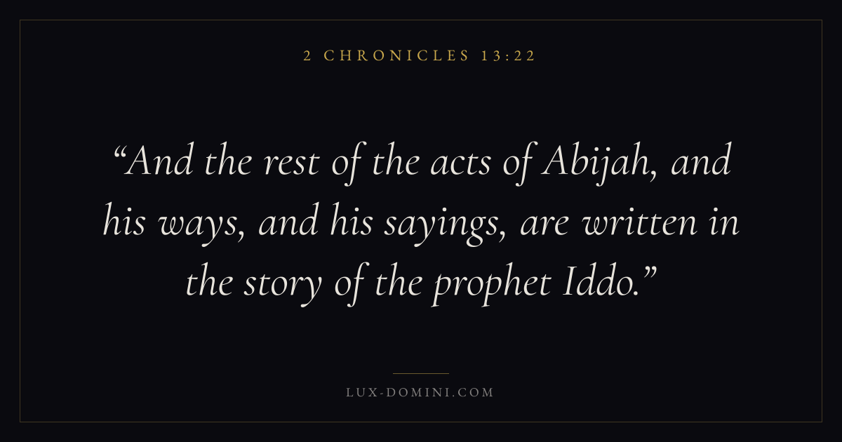 And the rest of the acts of Abijah, and his ways, and his sayings, are written in the story of the prophet Iddo.