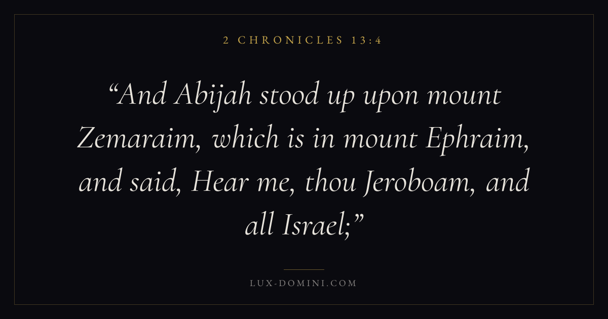 And Abijah stood up upon mount Zemaraim, which is in mount Ephraim, and said, Hear me, thou Jeroboam, and all Israel;