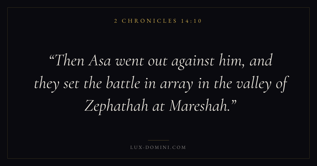 Then Asa went out against him, and they set the battle in array in the valley of Zephathah at Mareshah.