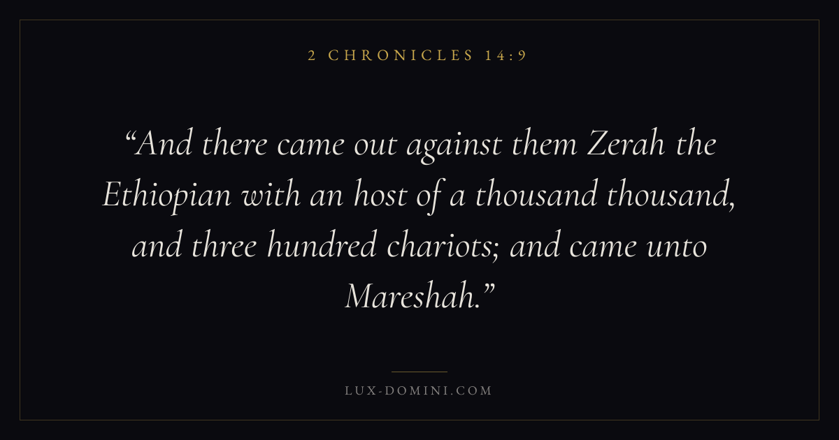 And there came out against them Zerah the Ethiopian with an host of a thousand thousand, and three hundred chariots; and came unto Mareshah.