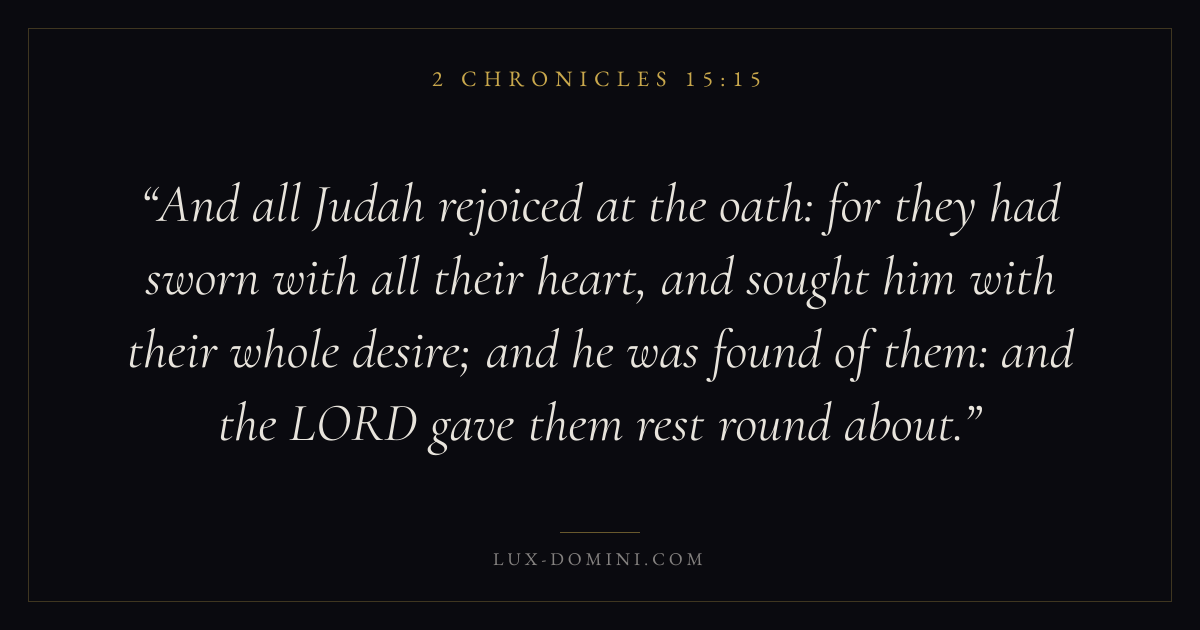 And all Judah rejoiced at the oath: for they had sworn with all their heart, and sought him with their whole desire; and he was found of them: and the LORD gave them rest round about.
