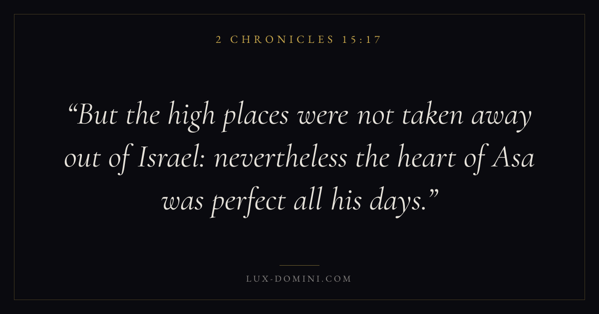 But the high places were not taken away out of Israel: nevertheless the heart of Asa was perfect all his days.