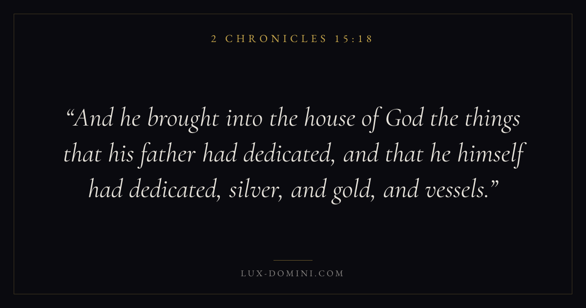 And he brought into the house of God the things that his father had dedicated, and that he himself had dedicated, silver, and gold, and vessels.