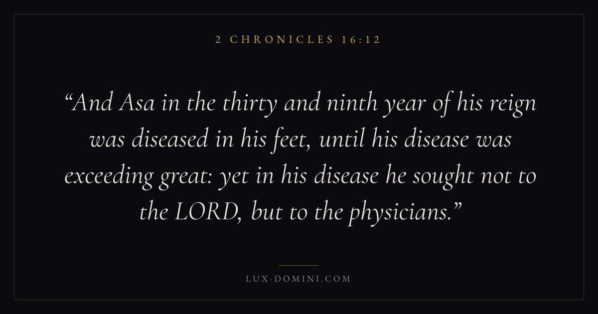 And Asa in the thirty and ninth year of his reign was diseased in his feet, until his disease was exceeding great: yet in his disease he sought not to the LORD, but to the physicians.