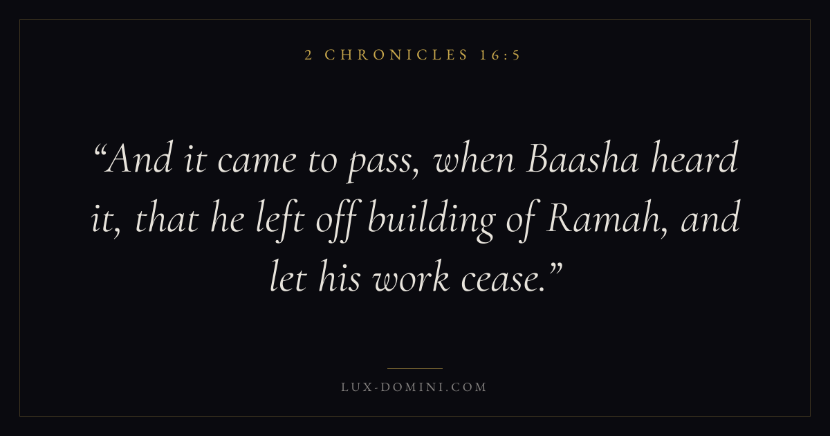 And it came to pass, when Baasha heard it, that he left off building of Ramah, and let his work cease.